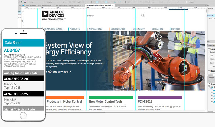 Another part of my job was to come up with new concepts. This included personalization of the site based on a specific user profile. This user is an engineer coming from the Motor Control market and was in the design phase of his project. It also included designing for formless data, for example: Taking a PDF Data Sheet and imagining how that information might be displayed in other ways than just PDF form.