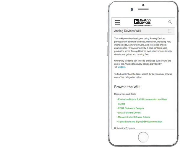 The Analog WIKI project was to develop a secondary nav system which was completely missing in mobile. My solution was to use a sliding drawer. When you open the prototype, click on the drawer icon next to Analog Devices Wiki header to see how the solution works.