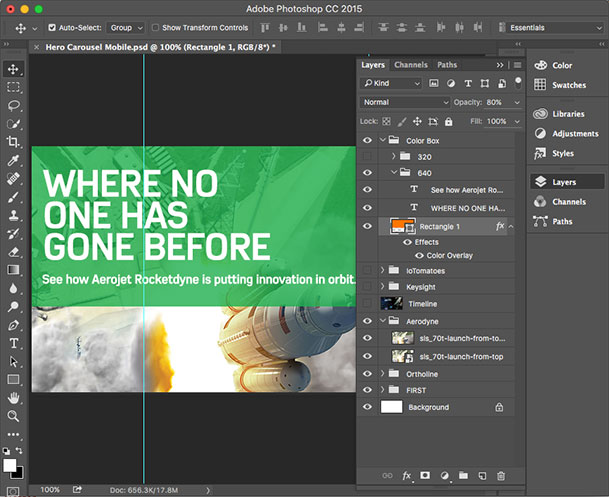 One particularly important part of my job was to make image creation more efficient. I created a Photoshop Template Library which helped ensure that the images across the site were consistent, but it also made the job of creating assets for any given campaign a lot easier.