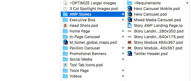 Any time we had a new Home Page Campaign, I could go to the AWP Stories folder and there were all the images I would need. I‘m such an efficiency geek!