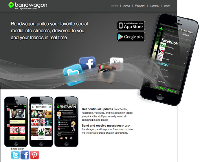 The first option is more open and uses animated gifs cycling through screen shots. The mobile version is based on Apple's App Store look.