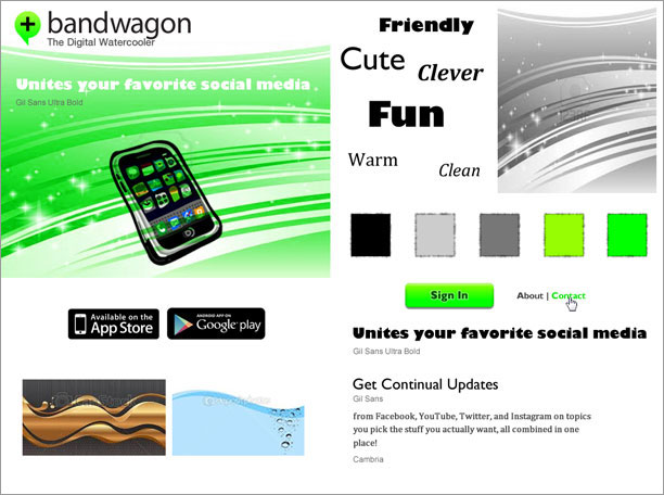 The first image here is one of three style tiles presented to the client offering visual cues and proposed adjectives that might help the client narrow down their stylistic desires. This one goes with the left column of the mood board (the second image). The middle column is very glossy, high quality image oriented and the right column is more flat and stylistic.