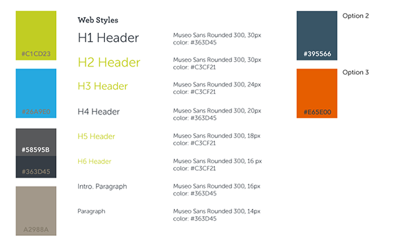 The initial presentation included this sample image that accompanied discussing the process of going from wireframe to mockup, and this style sheet that offered some new color suggestions to add to their corporate pallette. This sample addressed the issues brought up in their UX testing.